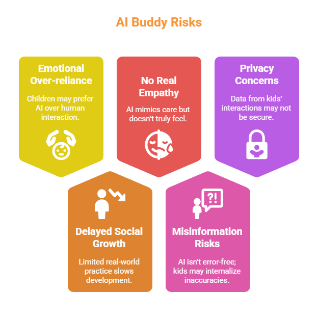 Emotional over‑reliance — Risk of children preferring their AI buddy over human interaction.